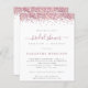 Pink Glitter Bridal Shower invitation. A budget price SMALLER 4.5” x 5.6” alternative. Available in a SEMI-GLOSS 110 lb CARD STOCK which is the default option (thicker for invitations), OR a SATIN FINISH 80 lb THINNER PAPER STOCK (ideal for enclosures). Envelopes are an optional extra and are slightly larger than the card size. Sparkly style for your brunch and bubbly with a faux glitter pink border on both sides, and Bridal Shower in a handwriting style script. Easily personalise the text to your own details. You can also change the text and background colours via the customise further option if you wish.