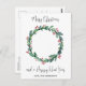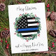 Send Merry Christmas greetings to friends and family with this Unique Thin Blue Line Police Christmas Card - Holiday wreath in a USA American flag design in Police Flag colours, modern black blue and white design with holly and berries. Personalise with family name. This police Christmas card is perfect for police families or police department christmas cards. COPYRIGHT © 2022 Judy Burrows, Black Dog Art - All Rights Reserved. Budget Police Christmas Wreath Blue Flag Holiday Postcard