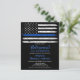 Thin Blue Line Police Retirement Invitations or Police Graduation Party Invitations. Celebrate years of dedicated service, or celebrate your new police academy graduate, and invite friends and family to your law enforcement party with this rustic wood Thin Blue Line Flag Police Retirement Invitation and Police academy graduation invitations - USA American flag design in Police Flag colours, distressed design.This police officer retirement invitation is also perfect for police academy graduation invitations, change venue in personalisation. These budget police retirement invitation cards are an alternative to free police retirement invitations . See our collection for matching police retirement gifts, police graduation gifts,party favours, and supplies. COPYRIGHT © 2021 Judy Burrows, Black Dog Art - All Rights Reserved. Budget Thin Blue Line Police Officer Retirement
