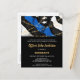 Thin Blue Line Police Promotion Invitations. Celebrate your police officer promotion and invite friends and family to your law enforcement party with this modern Thin Blue Line Flag with Gold String Lights Police Promotion Invitation. USA American flag design in Police Flag colours, modern black blue white and gold design. This police officer promotion invitation is also perfect for police department promotion ceremony, and party. See our collection for matching police promotion gifts, police promotion party favours, and supplies. These budget retirement invitation postcards need to be mailed as oversized postcards so may incur standard postage fees but they don't need an envelope or a return address label. COPYRIGHT © 2021 Judy Burrows, Black Dog Art - All Rights Reserved. Budget Police Promotion Law Enforcement Invite