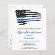Thin Blue Line Police Promotion Invitations. Celebrate your police officer promotion and invite friends and family to your law enforcement party with this modern Thin Blue Line Flag Police Promotion Invitation. USA American flag design in Police Flag colours, modern black blue white design. This police officer promotion invitation is also perfect for police department promotion ceremony, and party. These budget retirement invitation postcards need to be mailed as oversized postcards so may incur standard postage fees but they don't need an envelope or a return address label. See our collection for matching police promotion gifts, police promotion party favours, and supplies. COPYRIGHT © 2021 Judy Burrows, Black Dog Art - All Rights Reserved. Budget Police Promotion Thin Blue Line Invitation