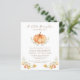 Celebrate your soon-to-be fall baby with your friends and family to share in the joy of your little one's arrival with this baby shower invitation, featuring a watercolor pumpkin, fall foliage, and an orange brown plaid pattern on the back.