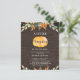 This Budget Autumn Pumpkin Baby Shower String Lights invitation features it autumn blooming rustic blue flowers, cones, orange leaves and berries, fir trees, with a bright little pumpkin and string lights . Personalise it and enjoy it.