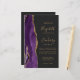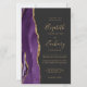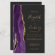 The left-hand edge of this elegant modern wedding invitation features a purple watercolor agate border trimmed with faux gold glitter. The customisable text combines gold-coloured handwriting, copperplate and italic fonts on an off-black background. Add additional details on the back, along with a QR code to help your guests visit your wedding website.