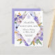 Dusty blue and purple flowers create a modern diamond-shaped frame around your save the date information.