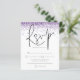 A budget price SMALLER 4.5” x 5.6” alternative. Available in a SEMI GLOSS 110 lb CARD STOCK which is the default option (recommended for invitations), OR a SATIN FINISH 80 lb THINNER PAPER STOCK (ideal for enclosures). Envelopes are an optional extra and are slightly larger than the card size. Purple Glitter Confetti Wedding RSVP. A stylish set typography in black for the main heading RSVP complementing the rest of the text which you can easily personalise with a purple faux confetti style glitter border at the top on each side.