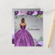 Budget Silver Purple Glitter Sparkle Dress Quinceañera Quince Invitation, Dark Skin Short Brown Hair
