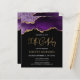 This trendy 90th birthday invitation features a watercolor image of an agate geode in shades of purple with faux gold highlights. The words "90th Birthday" appear in faux gold glitter in decorative modern handwriting font. Customise it with the name of the honoree in gold coloured text and the details in white. The same purple agate image appears on the reverse side.