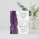 The left-hand edge of this elegant modern wedding invitation features a purple watercolor agate border trimmed with faux gold glitter. The customisable text combines gold-coloured handwriting script with black copperplate and italic fonts on a white and grey marble background. Add additional details to the back, along with a QR code to help guests visit your wedding website.