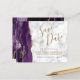 This elegant budget save the date card features a purple watercolor agate border trimmed with faux gold glitter. The customisable text combines black and gold-coloured handwriting script, copperplate and italic fonts on a grey and white marble background. The reverse side features a matching purple and gold agate design.