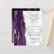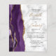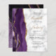 The left-hand edge of this elegant modern wedding invitation features a purple watercolor agate border trimmed with faux gold glitter. The customisable text combines gold coloured handwriting with black copperplate and italic fonts on a white and grey marble background. The reverse side features a matching purple and gold agate design. NOTE: Envelopes are not automatically included with these budget invitations, so please remember to choose the "white envelopes" option!