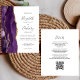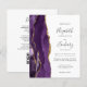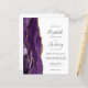 The left-hand edge of this elegant modern wedding invitation features a purple watercolor agate border trimmed with faux gold glitter. The customisable text combines handwriting, copperplate and italic fonts in charcoal grey on a white background. The reverse side provides space for wedding details on a solid white background, along with a QR code guests can scan to visit your website and RSVP. NOTE: Envelopes are not automatically included with these budget invitations, so please remember to choose the "white envelopes" option!
