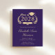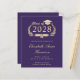 Modern budget-friendly purple blue college graduation announcement featuring "Class of" in a gold illustration of a laurel wreath, a gold grad cap topper and diploma, and the graduate's name in an elegant gold script. Add their school, major, honours or future plans in classic gold serif typography.