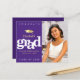 Announce to the world that your favourite grad has reached their milestone with this stunning, simple, modern, personalised budget announcement invite. Bold, graphic, white typography and faux gold foil cap icon overlay a purple background. On the right hand side, add a photo of your choice. Personalise the custom text with your graduate’s name, school name, date, and class year. On the back, add your personal note, next school they’re attending, party information, etc. Guaranteed to add stylish fun to their special occasion!