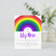 Invite friends and family to celebrate your child's birthday with this bold rainbow party invitation.