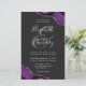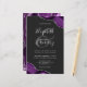A purple watercolor agate design trimmed with faux silver glitter appears in two corners of this elegant design. Personalise it with the couple's names in silver grey handwriting script over a large grey ampersand. Add the wedding details in copperplate and italic fonts on a white background. The reverse side features a matching purple and silver agate design.