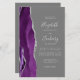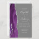 The left-hand edge of this elegant modern wedding invitation features a purple watercolor agate border trimmed with faux silver glitter. The customisable text combines handwriting, copperplate and italic fonts in silver grey on a medium grey background. Add additional details on the back, along with a QR code to help your guests visit your wedding website.