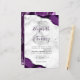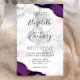 A purple watercolor agate design trimmed with faux silver glitter appears in two corners of this elegant design. Personalise it with the couple's names in dark purple handwriting script over a large grey ampersand. Add the wedding details in black copperplate and italic fonts on a grey and white marble background. The reverse side features a matching purple and silver agate design.