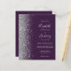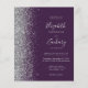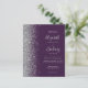 The left-hand edge of this elegant modern wedding invitation features a silver faux glitter border. The customisable text combines pale silver grey handwriting, copperplate and italic fonts on a dark purple background. Add additional details on the back, along with a QR code to help your guests visit your wedding website.