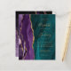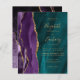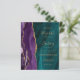 This elegant modern wedding invitation features a purple and teal watercolor agate design trimmed with faux gold glitter. The customisable text combines gold-coloured handwriting, copperplate and italic fonts. The reverse side features a coordinating purple and gold agate design.