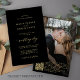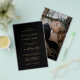 Elegant simple minimal budget affordable custom photo all in one RSVP and guest details black wedding invitation template PAPER FLYER with scanning QR code (automatically generated with your link to your website) featuring a classy stylish chic trendy faux gold calligraphy script. +++++++++++++ Easy to personalise with your details and photo! The invitation is suitable for formal modern weddings. +++++++++++++++ NOTE that the background colour can be changed to match your wedding colour scheme. If comfortable doing it, you can change it after selecting CUSTOMIZE IT option. ++++++++++++++++ PLEASE READ THIS BEFORE PURCHASING! This is a low budget affordable program printed on a FLYER (advertising type paper). ++++ Please note that BUDGET PAPER IS THIN - You can upgrade to have this card printed on cardstock ++++ ENVELOPES NOT INCLUDED.
