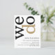 BUDGET QR Code Gold Black White Wedding Invite. A budget price SMALLER 4.5” x 5.6” alternative. Available in a SEMI-GLOSS 110 lb CARD STOCK which is the default option (thicker for invitations), OR a SATIN FINISH 80 lb THINNER PAPER STOCK (ideal for enclosures). Add your QR code to your wedding website on the back so your guests can RSVP and see all the details online without the need for separate enclosures. A modern typographical design with We Do in large typography rotated and to the side at the top in black and gold on a background of white. Background and text colours can be changed if you wish via Customise further.