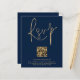 Budget QR Code Gold Navy Blue Script Wedding RSVP