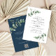Eucalyptus Greenery foliage watercolor modern minimal elegant contemporary garden party Wedding invitation. Simple contemporary botanical design. Sage green, navy blue, black and white elegant modern colorway suits spring, summer fall, autumn and whiter wedding ceremonies. With space on the back for a QR code to link to website information.