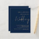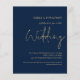 There are two paper options to choose from for this size (4.5 x 5.6”) in the Budget range. For this product, I would recommend the semi-gloss which is a 110 gsm card stock, similar in thickness to a postcard. The Satin option is a much thinner paper 80gsm. The default is set to semi-gloss. PLEASE NOTE there is ONE per sheet. Budget QR code Navy Blue Gold Typography Wedding Invitation. Add your QR code to your wedding website on the back makes this a convenient option for your guests to RSVP and see all the details without the need for separate RSVP and details cards. Minimalist typographical style, with a set handwritten script for Wedding and the rest of the text you can easily personalise.