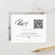 Less hassle, no missing mail when you invite your guests to RSVP online with your QR code that sends them directly to your wedding website. The design features a minimalist, simple black and white creative with a modern very elegant calligraphy RSVP script. Easily follow directions for inserting your wedding website URL in the QR code example above. That's all there is to it.