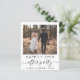 Budget-friendly elopement or private wedding announcement and all-in-one wedding reception invitation. The front features your photo, "Happily Ever After Party" in a mix of simple typography and a chic script with swashes and your first names and wedding or reception date joined together by a heart. On the back, input your wedding website address to create a QR code for guests to scan to see your wedding photos, all of the details and to RSVP online, and add your names in a signature-like script. This budget semi-gloss paper is similar in weight to photo paper. A larger 5x7 traditional card stock version is also available (message us for the link).