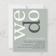 BUDGET Simple QR code Sage Ivory Text Wedding Invite. A budget price SMALLER 4.5” x 5.6” alternative. Available in a SEMI-GLOSS 110 lb CARD STOCK which is the default option (thicker for invitations), OR a SATIN FINISH 80 lb THINNER PAPER STOCK (ideal for enclosures). Add your QR code to your wedding website on the back so your guests can RSVP and see all the details online without the need for separate enclosures. A modern typographical design with We Do in large typography in Ivory with them”d” in grey, rotated and to the left hand side on a background of light sage green. Background and text colours can be changed if you wish via Customise further.