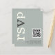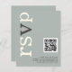 A value for money BUDGET alternative on a smaller size 4.5 x 5.6” semi-gloss 110lbs weight, which is of similar thickness to a postcard (however is not suitable to use as a postcard.). PLEASE NOTE there is ONE per sheet. QR Code Sage Ivory Wedding Online RSVP. Add your QR code to your wedding website so your guests can RSVP online. A modern typographical design with RSVP in large typography in Ivory with the ”v” in grey, rotated and to the left hand side on a background of light sage green. Background and text colours can be changed if you wish via Customise further.