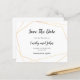 QR Code Simple Gold Geometric Save The Date. A budget price SMALLER 4.5” x 5.6” alternative. Available in a SEMI-GLOSS 110 lb CARD STOCK which is the default option (thicker for invitations), OR a SATIN FINISH 80 lb THINNER PAPER STOCK (ideal for enclosures). Add your QR code to your wedding website on the back by replacing the QR code on the sample.  This elegant design has a simple gold geometric frame with black text. Text is easily personalised and the background and text colours can be changed if you so wish
