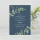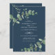 Eucalyptus Greenery foliage watercolor modern minimal elegant contemporary garden party Wedding invitation. Simple contemporary botanical design. Sage green, navy blue, black and white elegant modern colorway suits spring, summer fall, autumn and whiter wedding ceremonies. With space on the back for a QR code to link to website information.