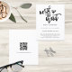 Budget QR Code Worth Wait Wedding Save the Date. A budget price SMALLER 4.5” x 5.6” alternative. Available in a SEMI-GLOSS 110 lb CARD STOCK which is the default option (thicker for invitations), OR a SATIN FINISH 80 lb THINNER PAPER STOCK (ideal for enclosures). Add your QR code to your wedding website on the back. For when circumstances mean that unfortunately it has become necessary for you to change the date of your wedding, this is a convenient way to let your guests know your change of plans and new date as soon as possible. This artsy design has stylish set script at the top Worth the Wait with a heart motif. The rest of the text you can easily personalise.
