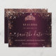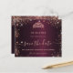 A girly and trendy Save the Date card for a Quinceañera, 15th birthday party. A burgundy faux metallic looking background colour. Decorated with rose gold faux glitter dust and a tiara, crown. The text: Save the Date is written with a large trendy hand lettered style script.