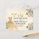 Announce your special day with the Floral Gold Save the Date Quinceañera card. This elegant design features luxurious gold floral accents that exude sophistication and charm. Perfect for setting the tone for your upcoming quinceañera, this save the date combines a touch of regal beauty with timeless elegance. The delicate gold details symbolise the joy and grace of your milestone celebration, ensuring your guests mark their calendars for this unforgettable event. A beautiful prelude to your quinceañera day!