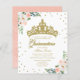Elegant gold tiara blush pink floral affordable quinceanera party 4.5”x5.6” invitations. PLEASE NOTE: The envelopes are NOT INCLUDE; matching A7 envelopes are available to be purchase separately.
