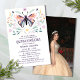 Budget Quinceañera Modern Pink Purple Butterfly Photo Floral Invitation features a simple yet elegant pink and purple butterfly amongst pretty flowers with your Quinceañera Invitation information below. Personalise by editing the text in the text boxes provided and adding your favourite photo. Designed for you by ©Evco Studio www.zazzle.com/store/evcostudio