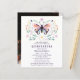 Budget Quinceañera Modern Pink Purple Butterfly Photo Floral Invitation features a simple yet elegant pink and purple butterfly amongst pretty flowers with your Quinceañera Invitation information below. Personalise by editing the text in the text boxes provided and adding your favourite photo. Designed for you by ©Evco Studio www.zazzle.com/store/evcostudio