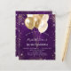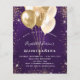 For an elegant Quinceañera, 15th birthday party. A trendy deep purple background. The purple colour is uneven. Decorated with faux gold glitter, sparkles and balloons. Personalise and add a name, age and party details. The name is written with a hand lettered style script