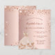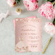 A modern, stylish and glamourous invitation for a Quinceañera, 15th birthday party. A faux rose gold metallic looking background with faux glitter and a rose gold ballgown. The name is written with a modern dark rose gold coloured hand lettered style script. Personalise and add your party details.