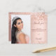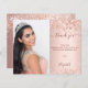 On front: Add a vertical size photo. An elegant rose gold, blush gradient background colour, decorated with faux glitter dust. Personalise and add a name and your thank you note.