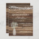 Budget Quinceanera Celebration Rustic Farmhouse String Lights Baby's Breath Jar Invitations on Wood background - includes beautiful and elegant script typography with modern Country Farm House Sparkle for the special 15th Birthday celebration.