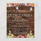 Budget Rustic Country Outdoors on Dark Wood with Burgundy, Orange and Yellow Sunflowers with Mason Jars on String Light Autumn or Fall Quinceanera Celebration Party Invitations - includes beautiful and elegant script typography for the special Birthday Celebration.