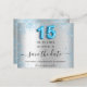 A girly and trendy Save the Date card for a Quinceañera, 15th birthday party. A faux silver looking background decorated with blue faux glitter dust. Personalise and add a date and name/age. The text: Save the Date is written with a large trendy hand lettered style script. Number 15 with a balloon style font.