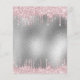 A modern, stylish and glamourous invitation for a Quinceañera, 15th birthday party. A faux silver metallic looking background with an elegant pink faux glitter drip, paint dripping look. The name is written with a black modern hand lettered style script. Personalise and add a name, age and party details.
