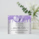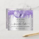 A faux silver looking background decorated with violet, lavender coloured faux glitter and balloons. Personalise and add a date and name/age. The text: Save the Date is written with a large trendy hand lettered style script.