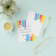 Beautiful budget rainbow wedding invitation with pretty, artistic paint strokes full of bright colour. These colourful invites are perfect for an artistic couple or a gay and lesbian wedding. The cheerful card has a matching backside.